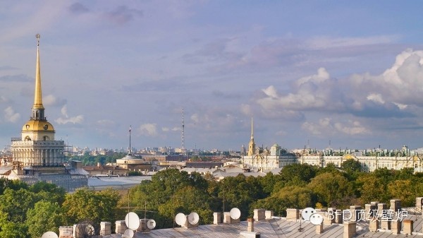 由于圣彼得堡独特的地理位置,光线是十分重要的。每天清晨和傍晚,阳光掠过建筑外墙、边角、街道、地板、墙壁,照耀几个小时,春夏季更是阳光普照。经历了一个漫长而寒冷的冬季,整座城市开始复苏。白天,太阳一整天都挂着。撒下的阳光增强了质地与细节的效果,处处让人出乎意料。